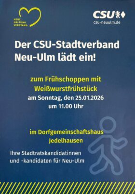 Der Stadtverband der CSU Neu-Ulm lädt Sie dazu herzlich ein.